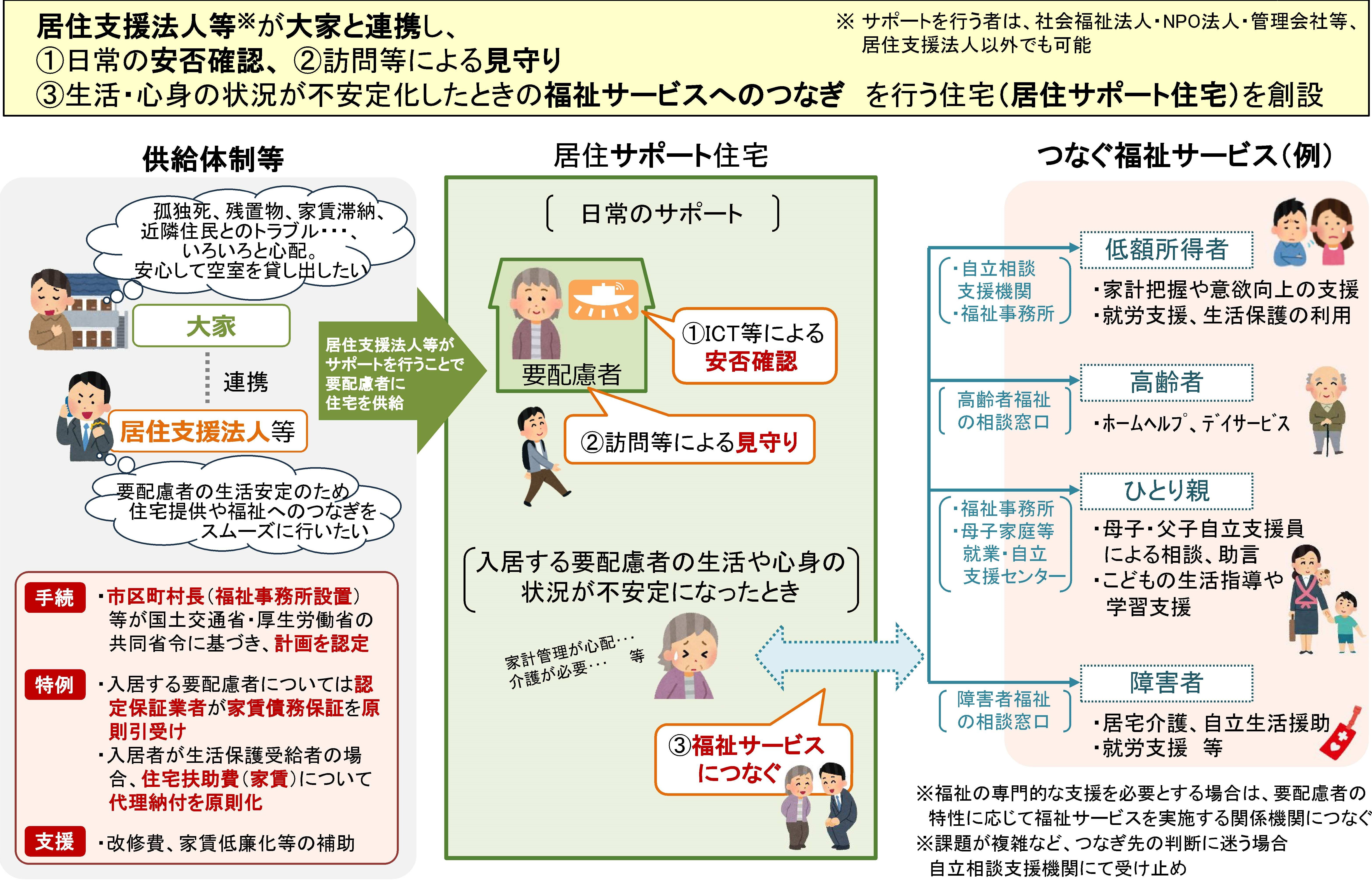※居住サポートには、安否確認・見守り・福祉サービスへのつなぎのほか、住宅確保要配慮者の生活の安定を図るために必要な援助を含む