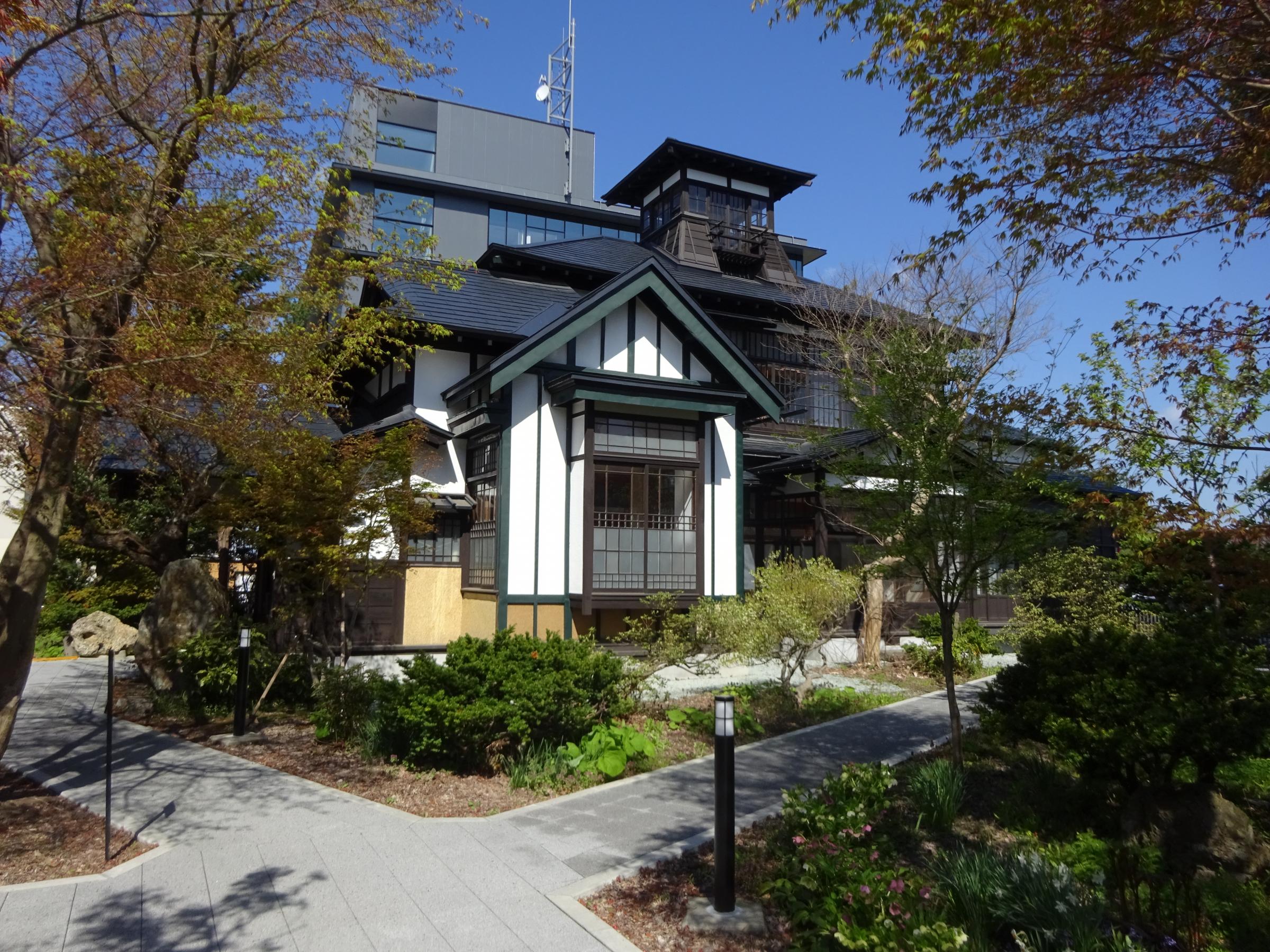 桜櫓館は、大館町長を務めた桜場文蔵氏が昭和8年(1933)に建てたもので、たびたび大火に見舞われた大館旧市街地にあって、奇跡的に残った昭和初期の貴重な木造建築です。桜場文蔵氏は、秋田犬保存会の第3代と第6代の会長を通算14年務め、秋田犬の保護や繁殖、普及活動に大きく寄与しました。